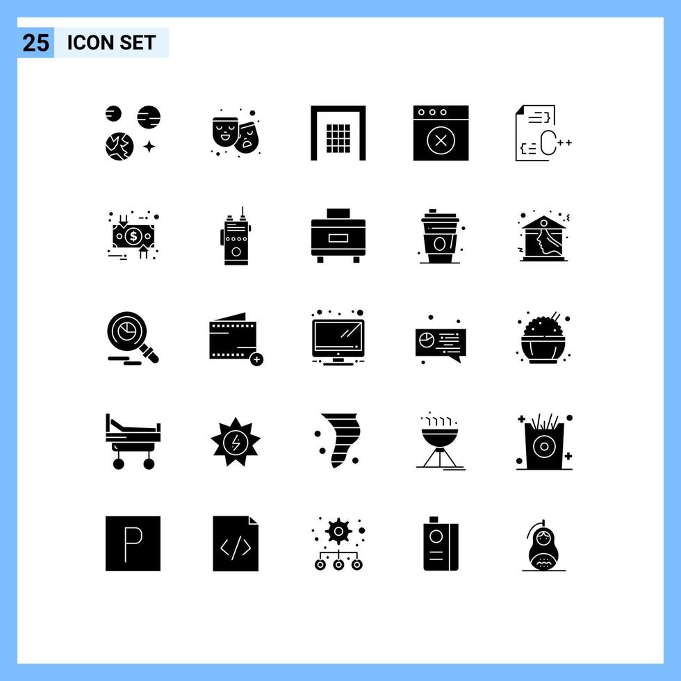 Pack of 25 Modern Solid Glyphs Signs and Symbols for Web Print Media such as develop c gate mac app Editable Vector Design Elements