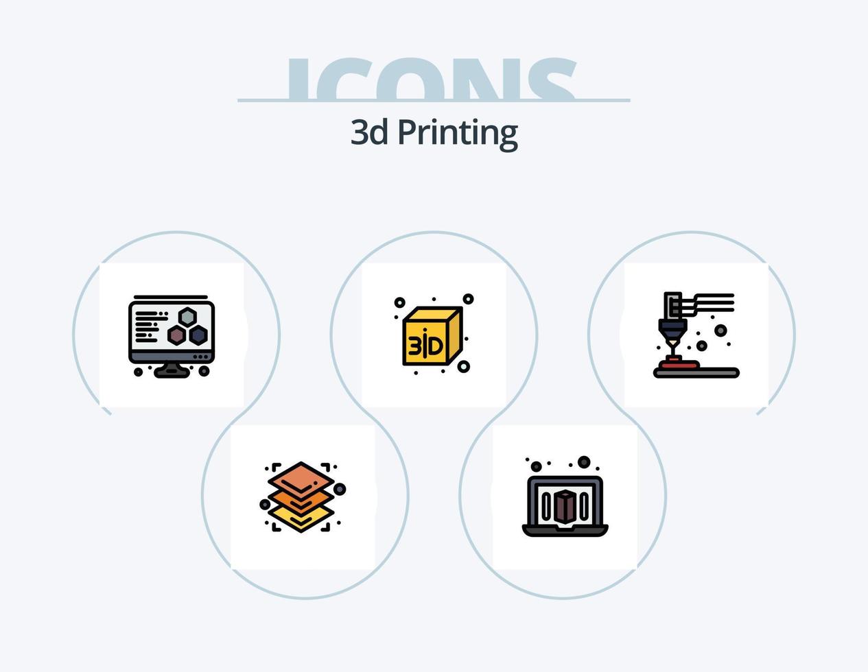 3d Printing Line Filled Icon Pack 5 Icon Design. . cube. computer. 3d. model vector