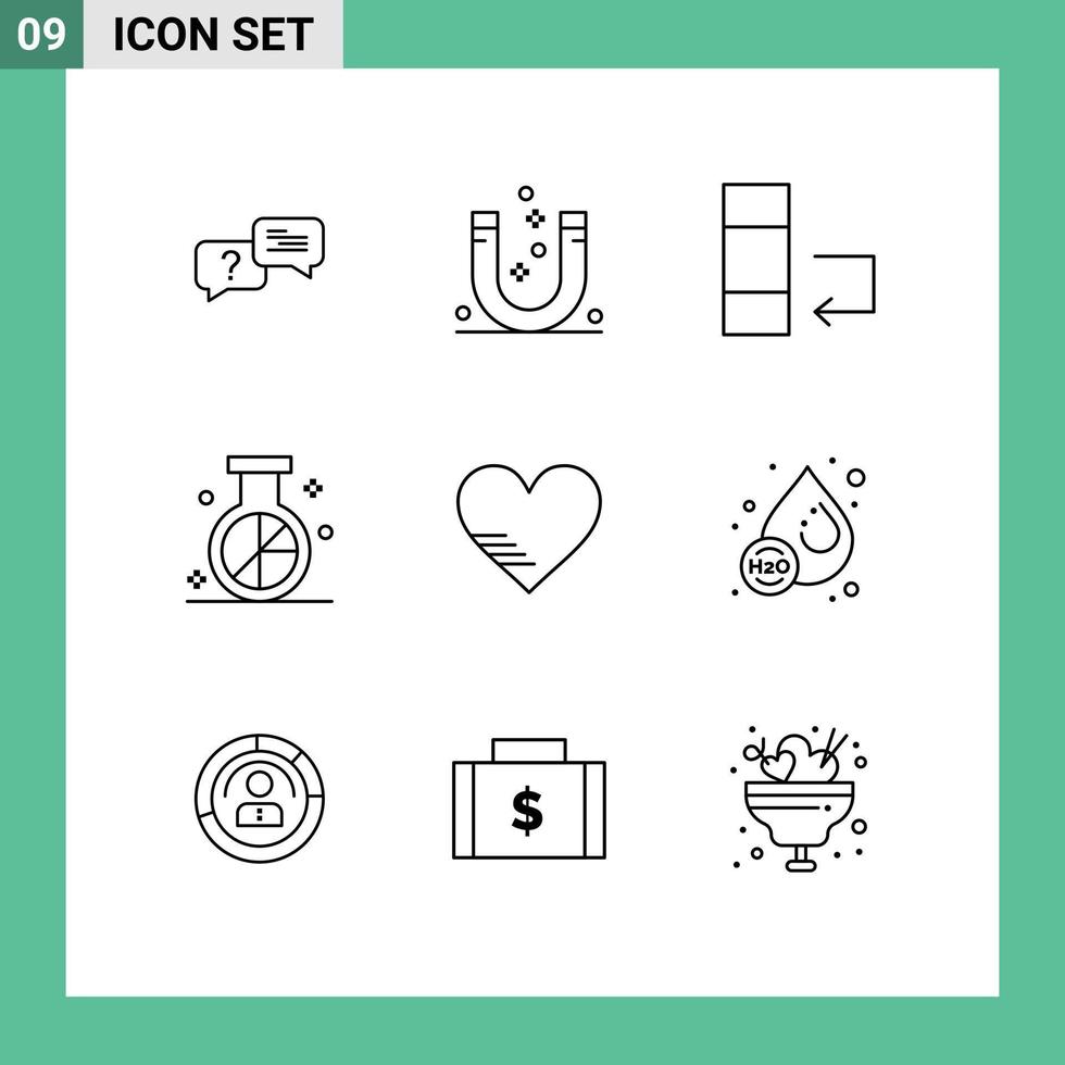 Editable Vector Line Pack of 9 Simple Outlines of heart optimization negative media engine Editable Vector Design Elements