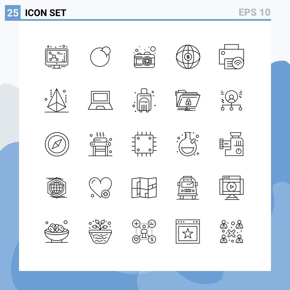 User Interface Pack of 25 Basic Lines of gadget computers camera dollar globe Editable Vector Design Elements
