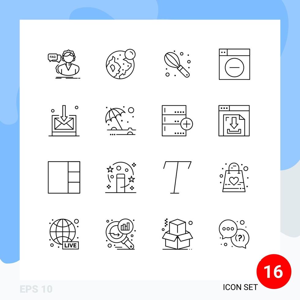 16 Universal Outlines Set for Web and Mobile Applications inbox minimize moon less web Editable Vector Design Elements