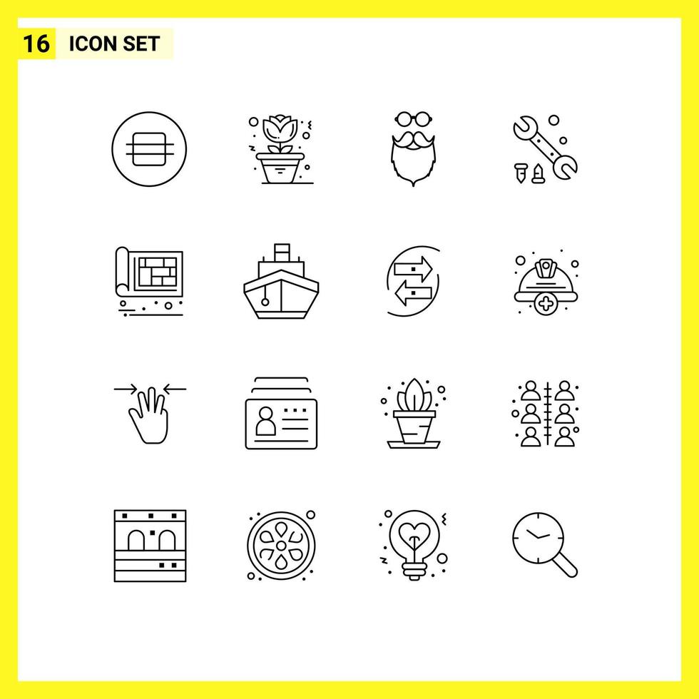User Interface Pack of 16 Basic Outlines of construction architectural hipster tool wrench Editable Vector Design Elements