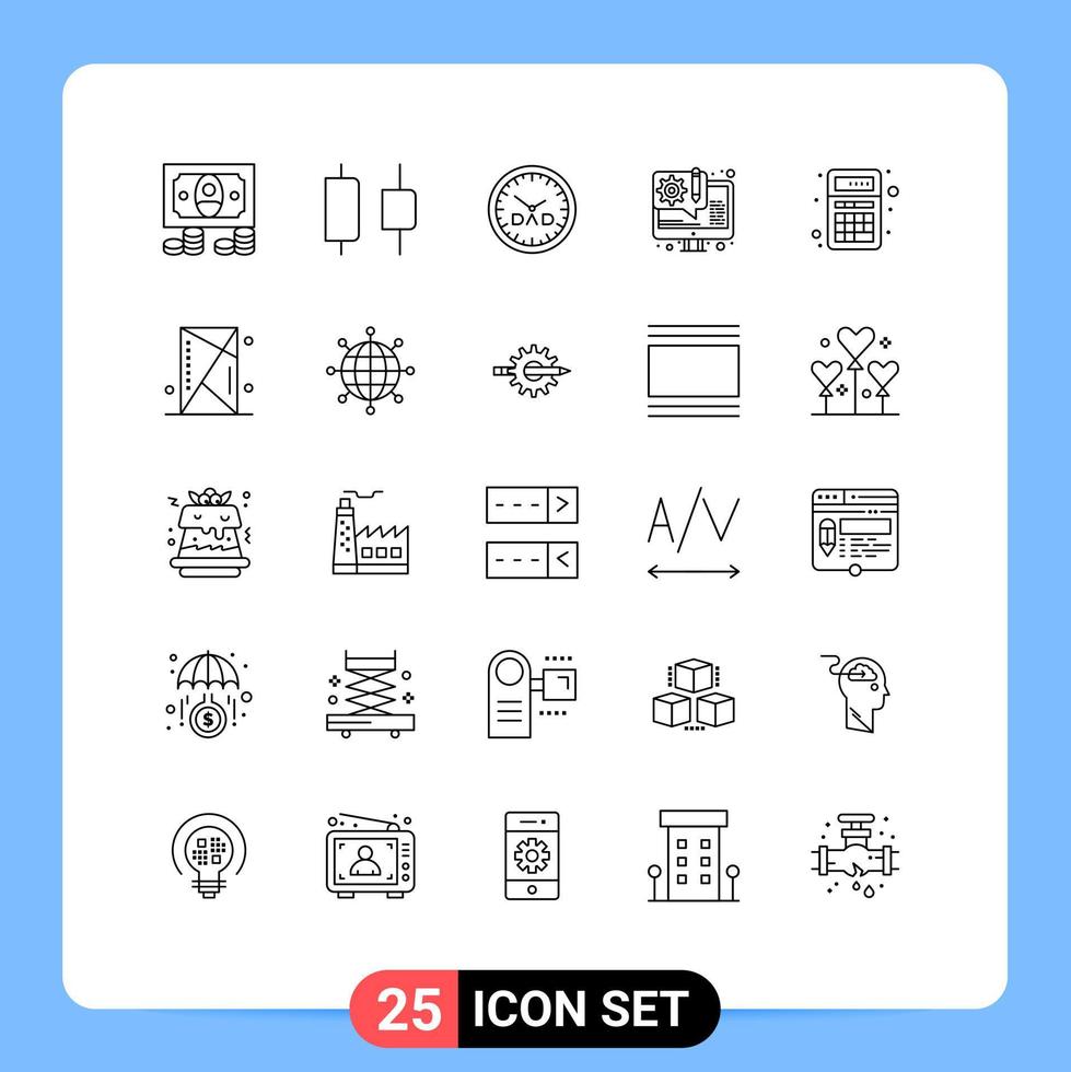 Modern Set of 25 Lines Pictograph of calculator app fathers day add web Editable Vector Design Elements