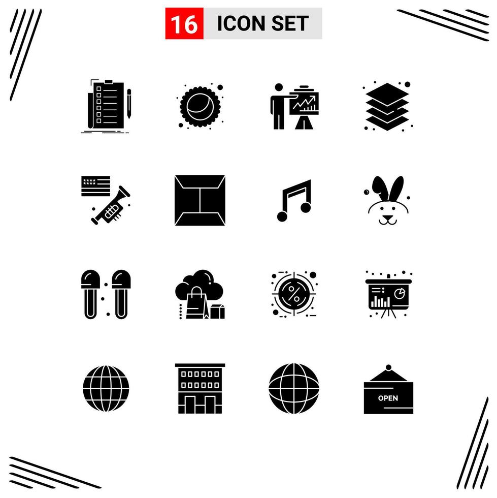 16 Universal Solid Glyph Signs Symbols of flag server arrow layers graph Editable Vector Design Elements Free Vector