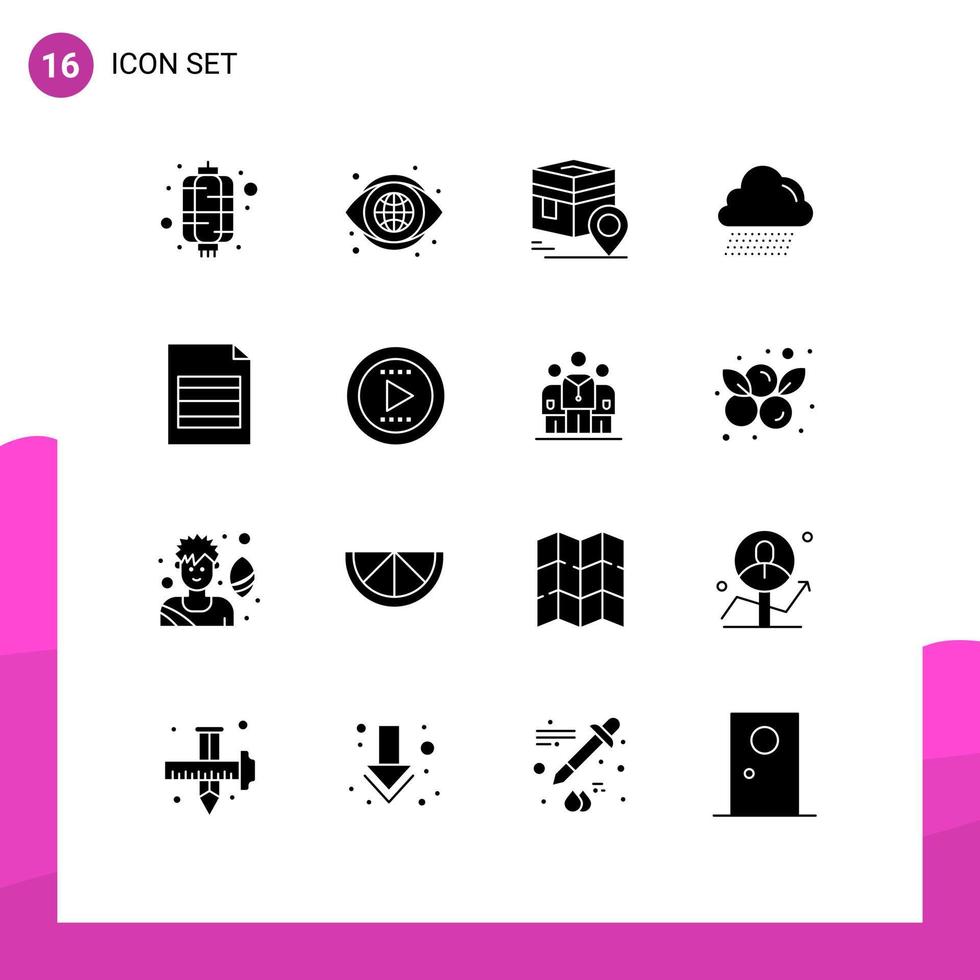 User Interface Pack of 16 Basic Solid Glyphs of excel canada khana rain muslim Editable Vector Design Elements