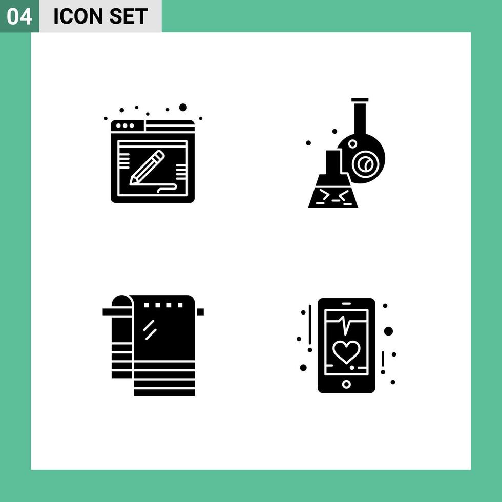 Modern Set of 4 Solid Glyphs and symbols such as blog bath web test towel Editable Vector Design Elements
