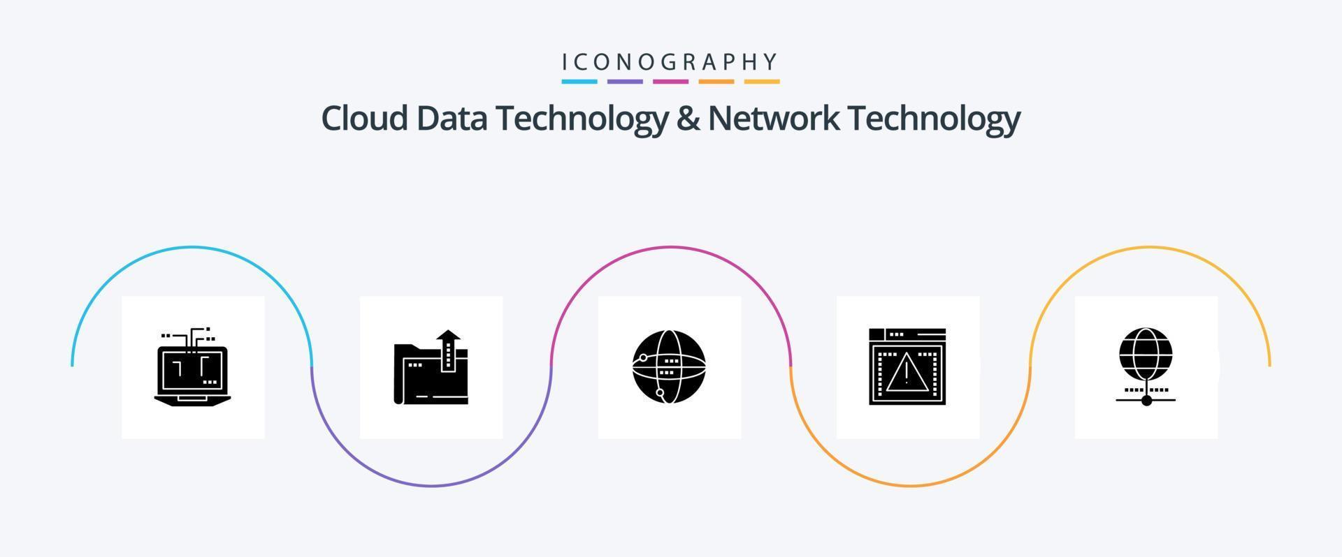 Cloud Data Technology And Network Technology Glyph 5 Icon Pack Including internet . error. world . codiing. file Free Vector