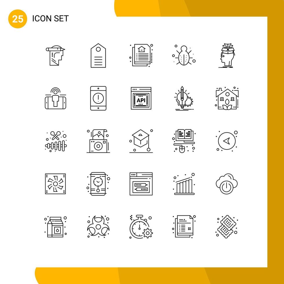 25 Thematic Vector Lines and Editable Symbols of data protection wear network bug Editable Vector Design Elements Free Vector