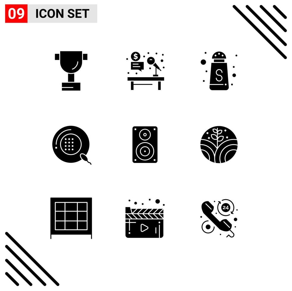 Pack of 9 Modern Solid Glyphs Signs and Symbols for Web Print Media such as loudspeaker audio sugar medicine form Editable Vector Design Elements Free Vector