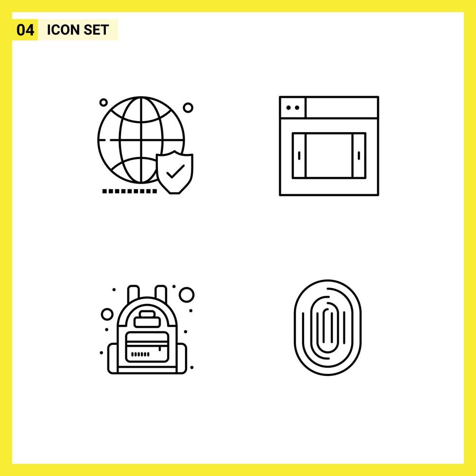 4 User Interface Line Pack of modern Signs and Symbols of globe bag world design fingerprint Editable Vector Design Elements Free Vector