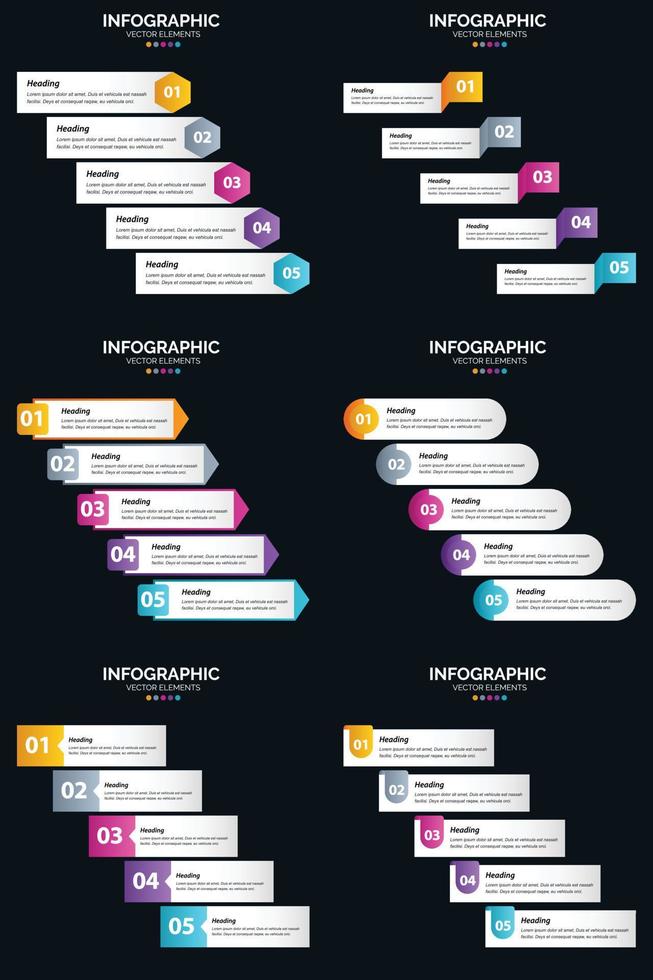 Vector 6 Infographics Pack Presentation slide template 5 Steps cycle diagrams and timelines Free Vector and Free SVG