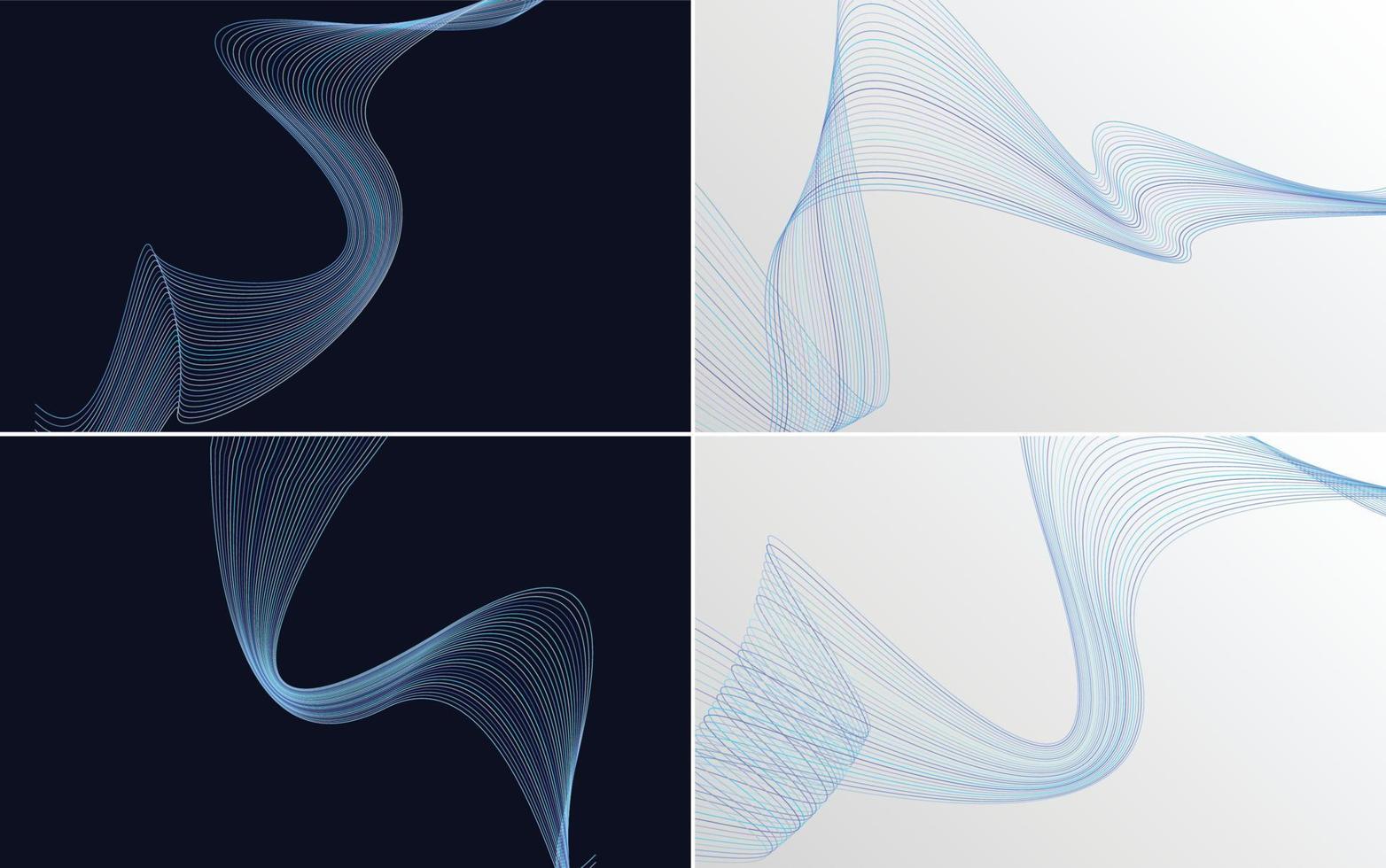 Set of 4 geometric wave pattern background Abstract waving line vector