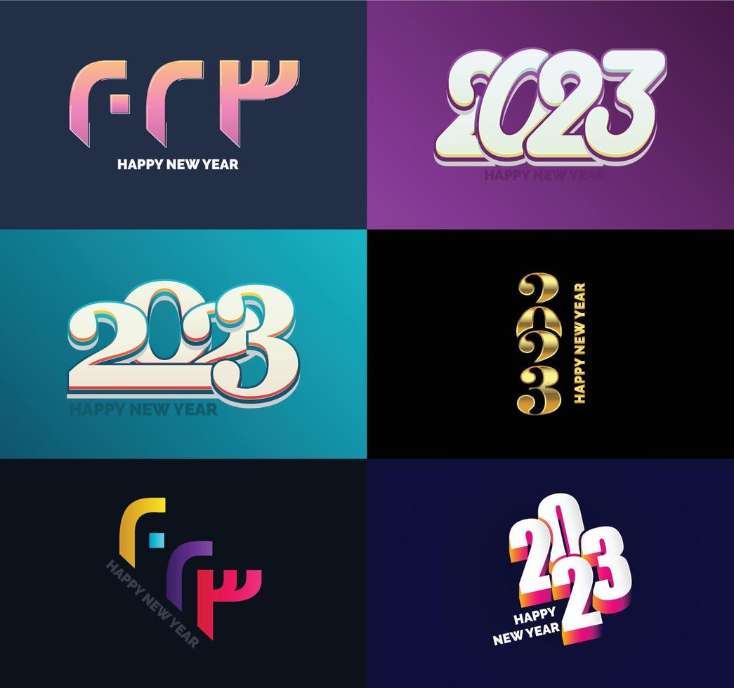 Big Set of 2023 Happy New Year logo text design 2023 number design template Free Vector and Free SVG
