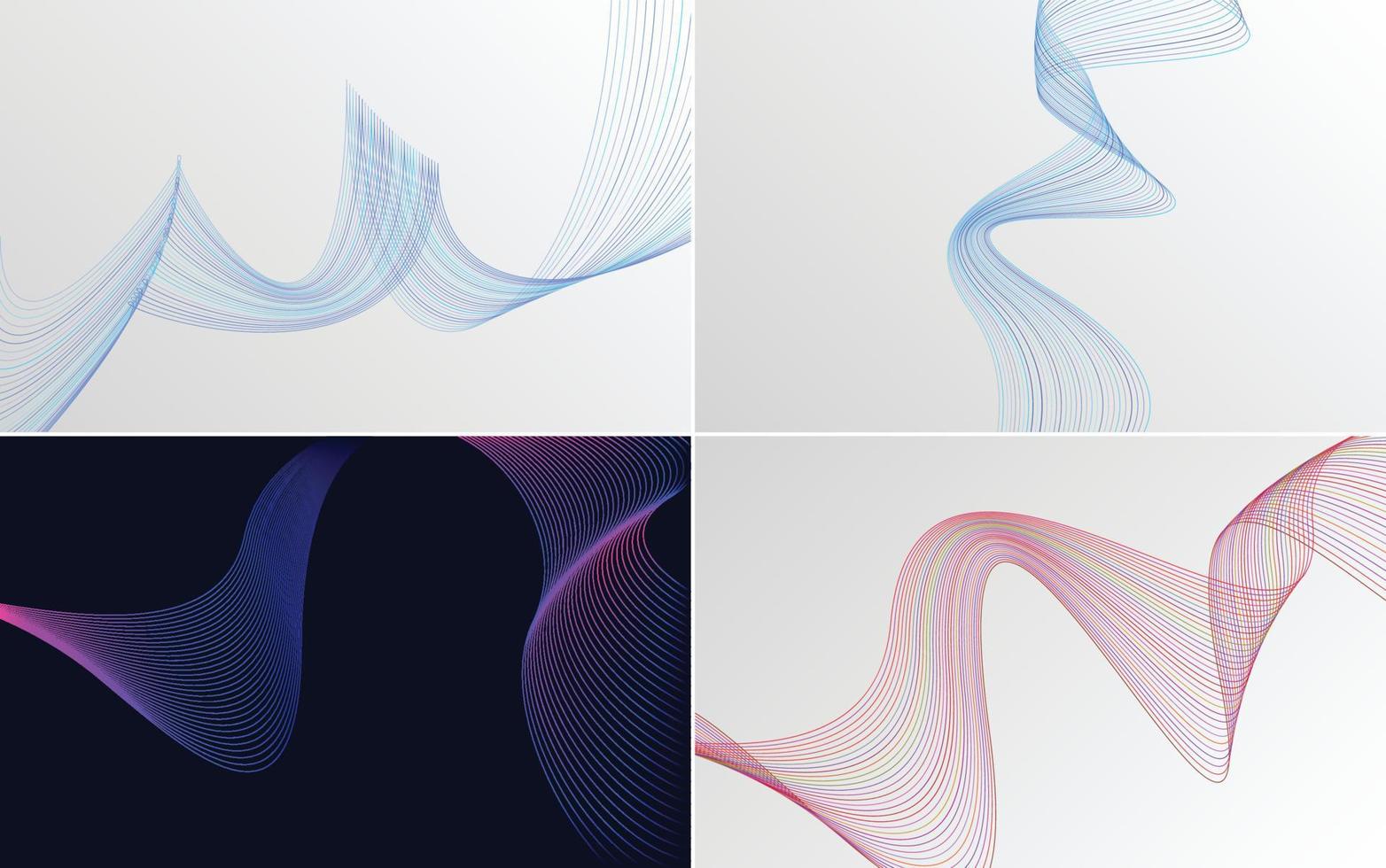 Set of 4 geometric wave pattern background Abstract waving line vector