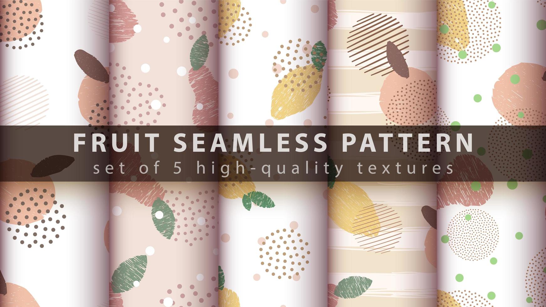 Set of modern seamless pattern background with lemon, apple, pear Pro Vector