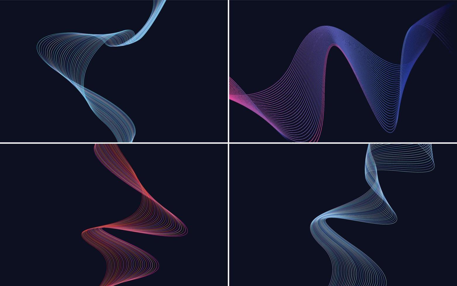 Set of 4 geometric wave pattern background Abstract waving line vector