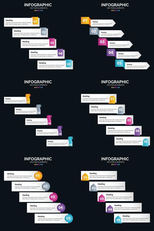 Vector 6 Infographics Pack Presentation slide template 5 Steps cycle diagrams and timelines Free Vector and Free SVG