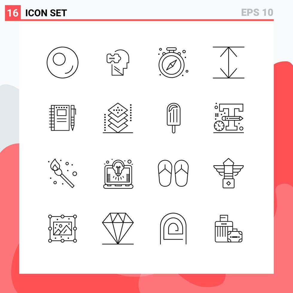 User Interface Pack of 16 Basic Outlines of coding pencil watch notebook sketch notebook Editable Vector Design Elements