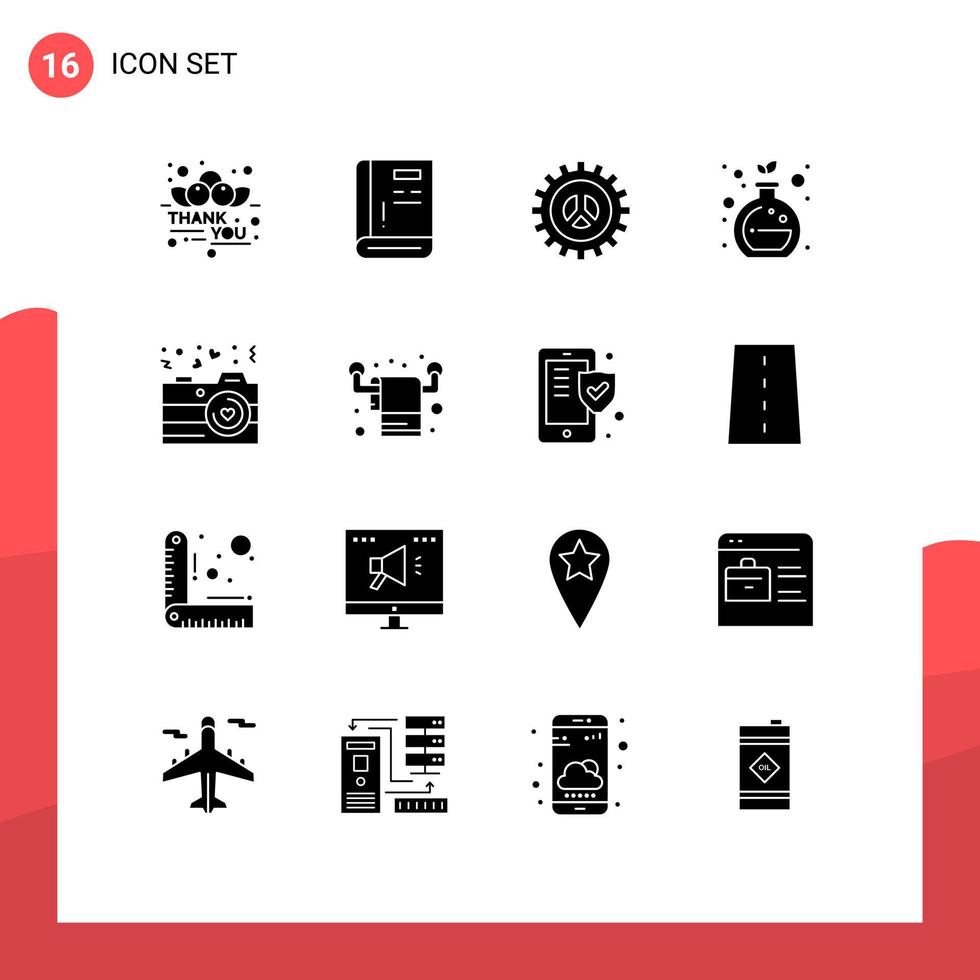 Set of 16 Vector Solid Glyphs on Grid for camera green support chemistry web design Editable Vector Design Elements