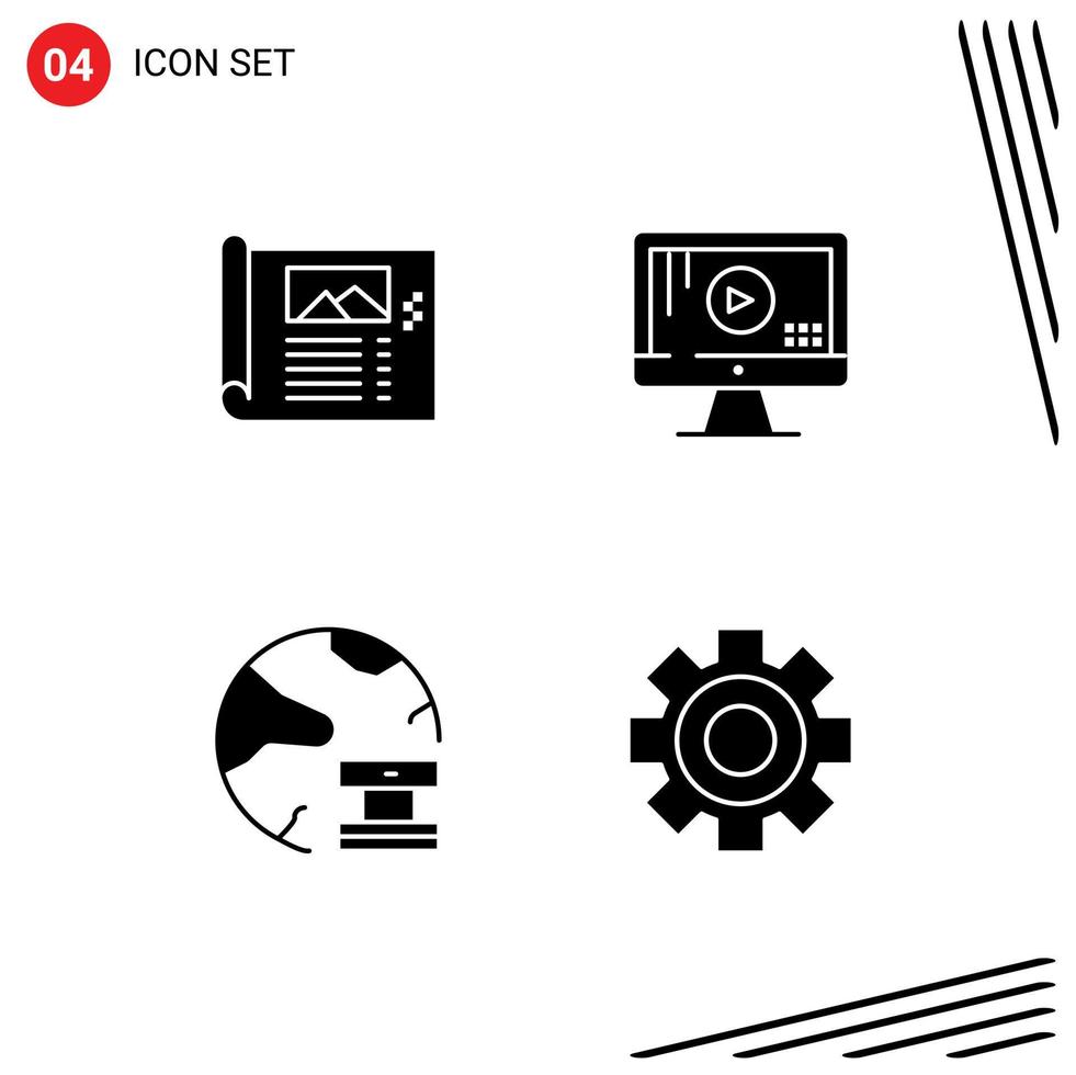 Group of 4 Solid Glyphs Signs and Symbols for design cloud sketch monitor database Editable Vector Design Elements