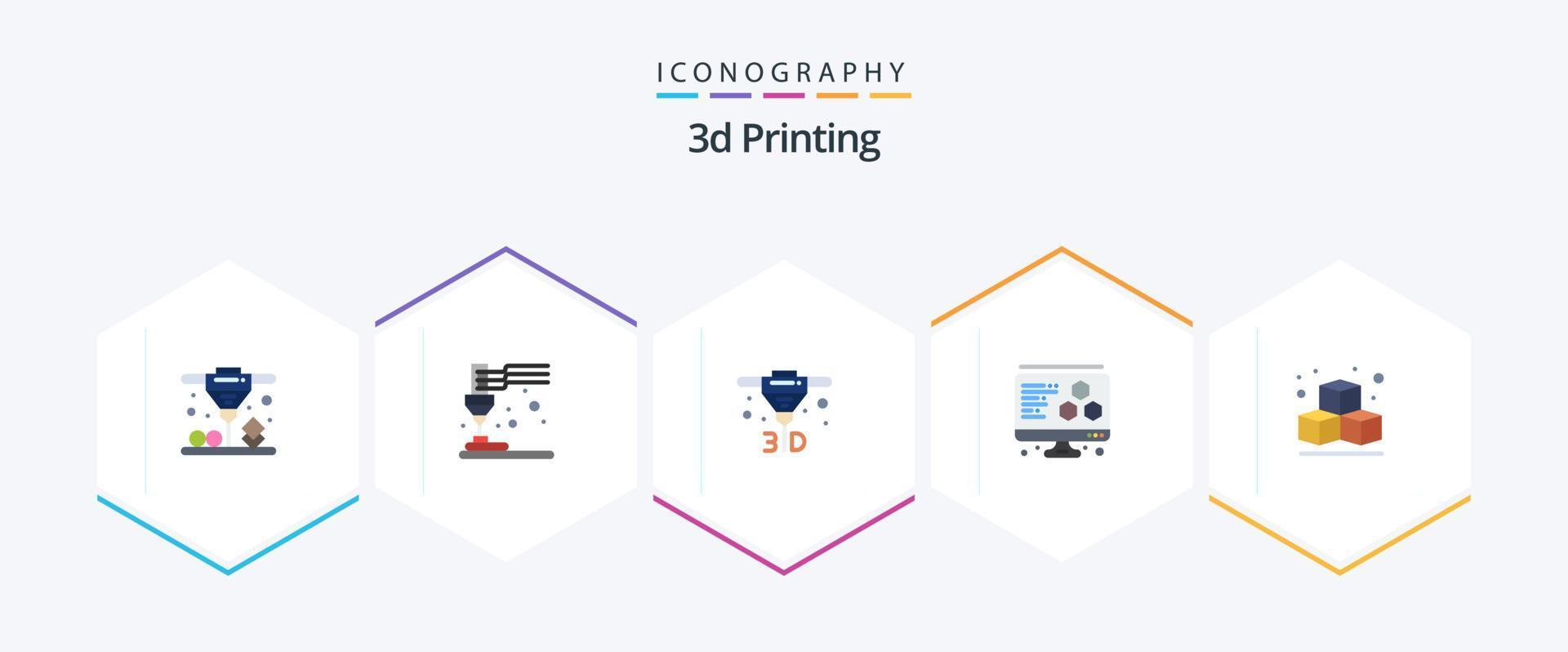 3d Printing 25 Flat icon pack including . cube. direct. box. computer vector