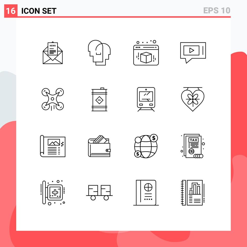 16 Universal Outlines Set for Web and Mobile Applications drone service feelings video chat Editable Vector Design Elements