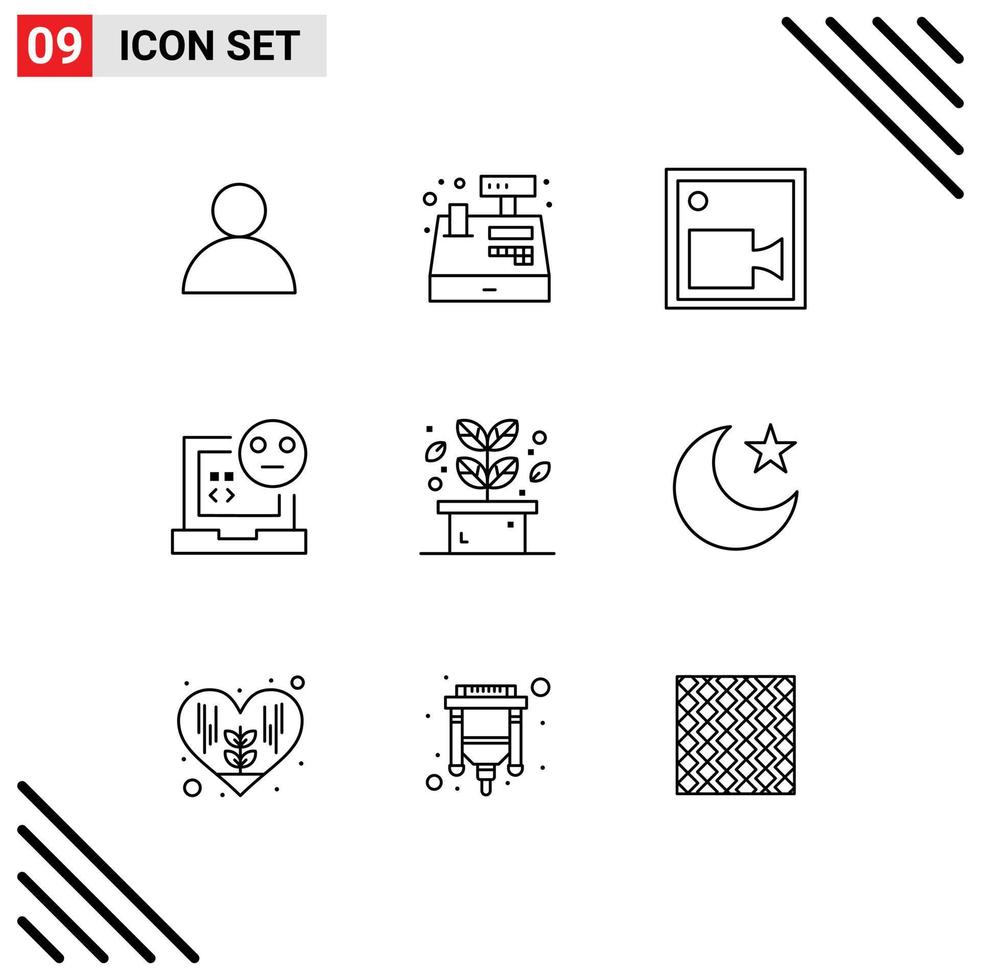 Editable Vector Line Pack of 9 Simple Outlines of leaf error camera development bug Editable Vector Design Elements Free Vector