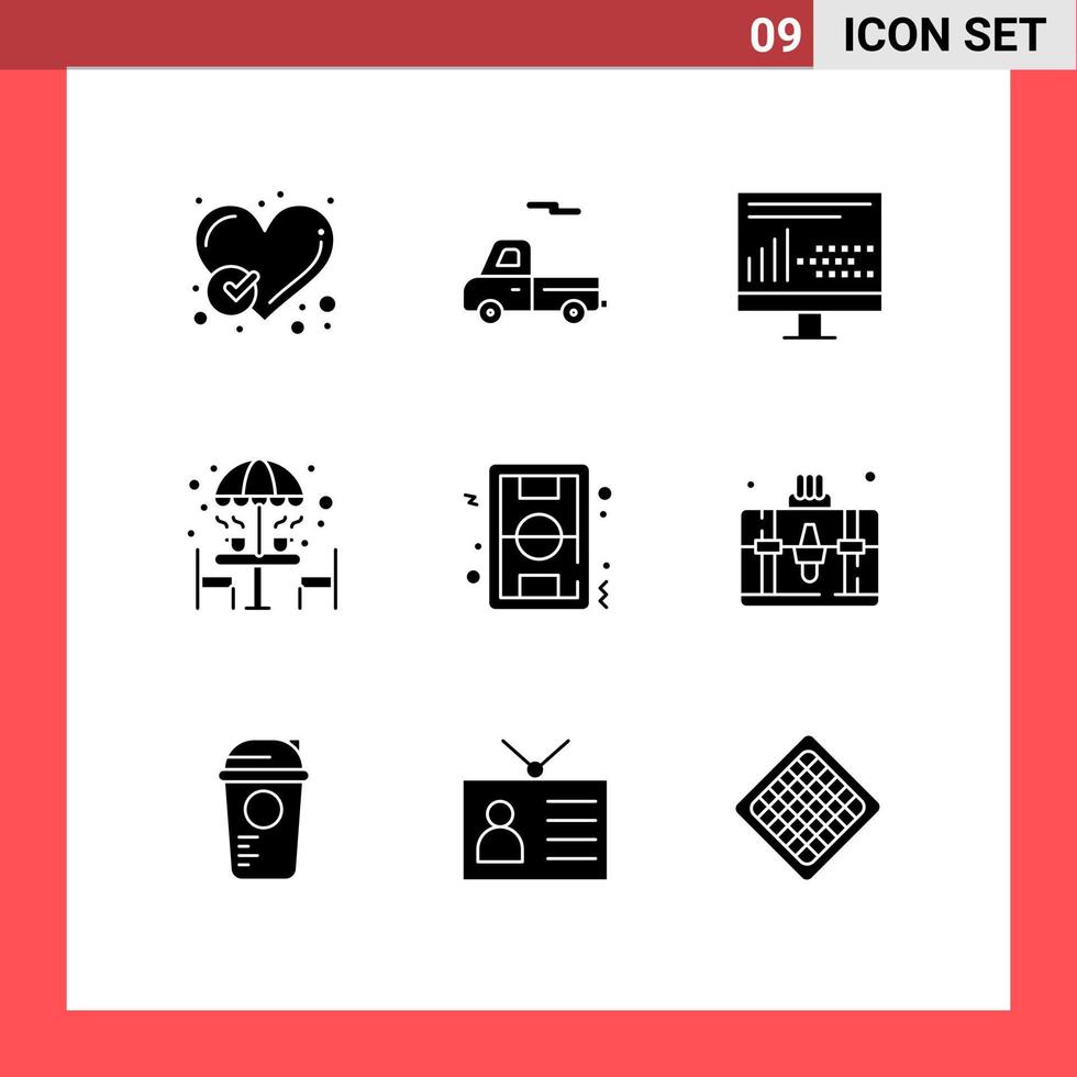 Pack of 9 Modern Solid Glyphs Signs and Symbols for Web Print Media such as umbrella furniture coding coffee statistics Editable Vector Design Elements
