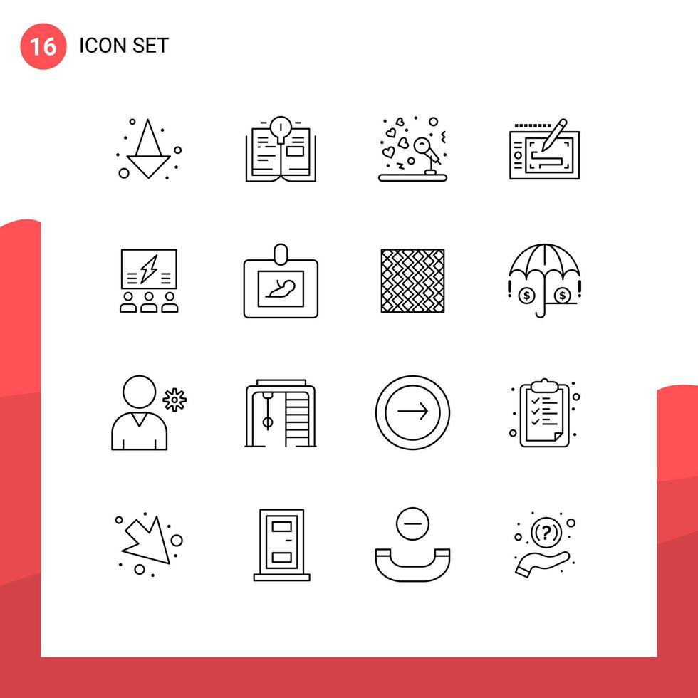 16 Universal Outlines Set for Web and Mobile Applications solution group music brainstorming presentation Editable Vector Design Elements Free Vector