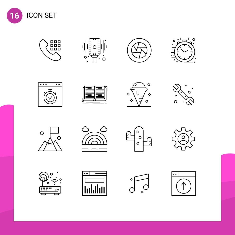 16 Universal Outlines Set for Web and Mobile Applications office business sound fast movie Editable Vector Design Elements