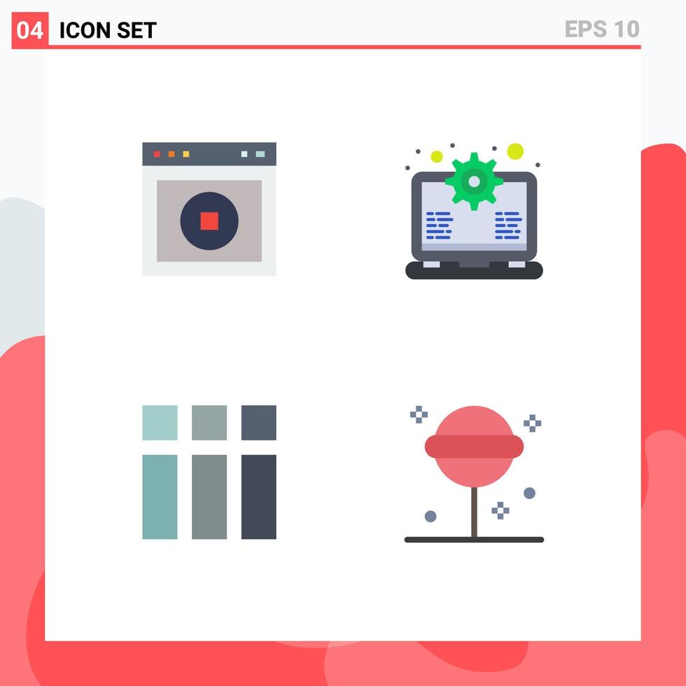 Pictogram Set of 4 Simple Flat Icons of stop collage web laptop image Editable Vector Design Elements