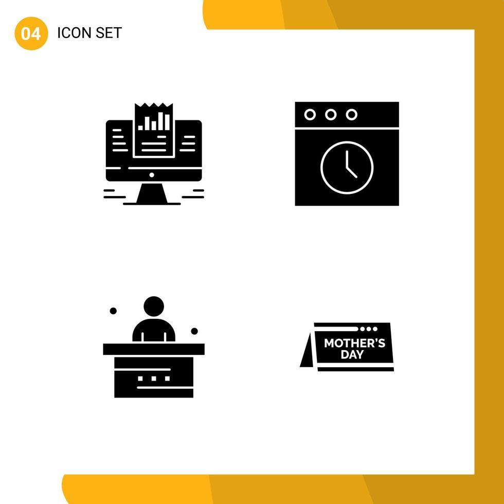 Editable Vector Line Pack of 4 Simple Solid Glyphs of report desk computer history student Editable Vector Design Elements Free Vector
