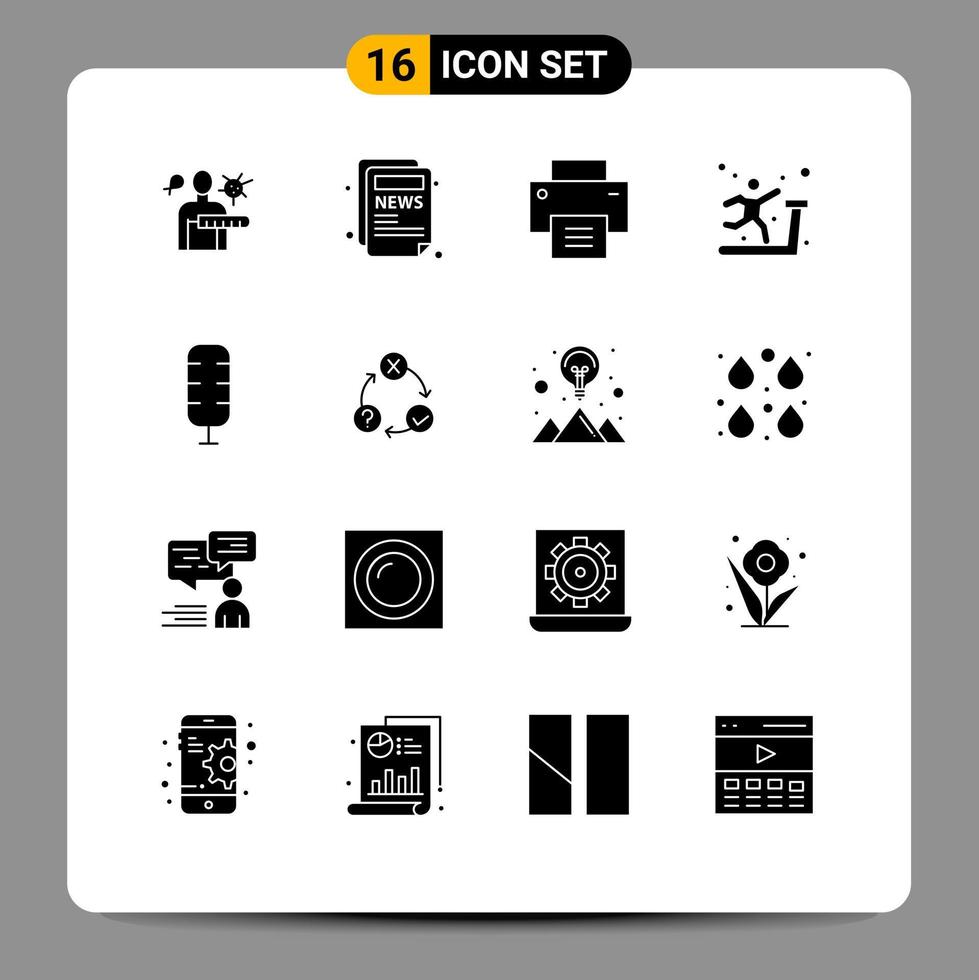User Interface Pack of 16 Basic Solid Glyphs of sport commentator interface treadmill gym Editable Vector Design Elements Free Vector