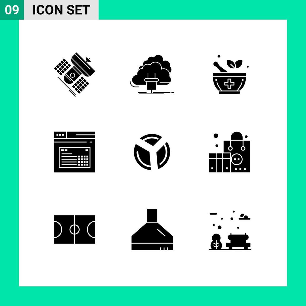 Set of 9 Vector Solid Glyphs on Grid for text web network page signaling Editable Vector Design Elements
