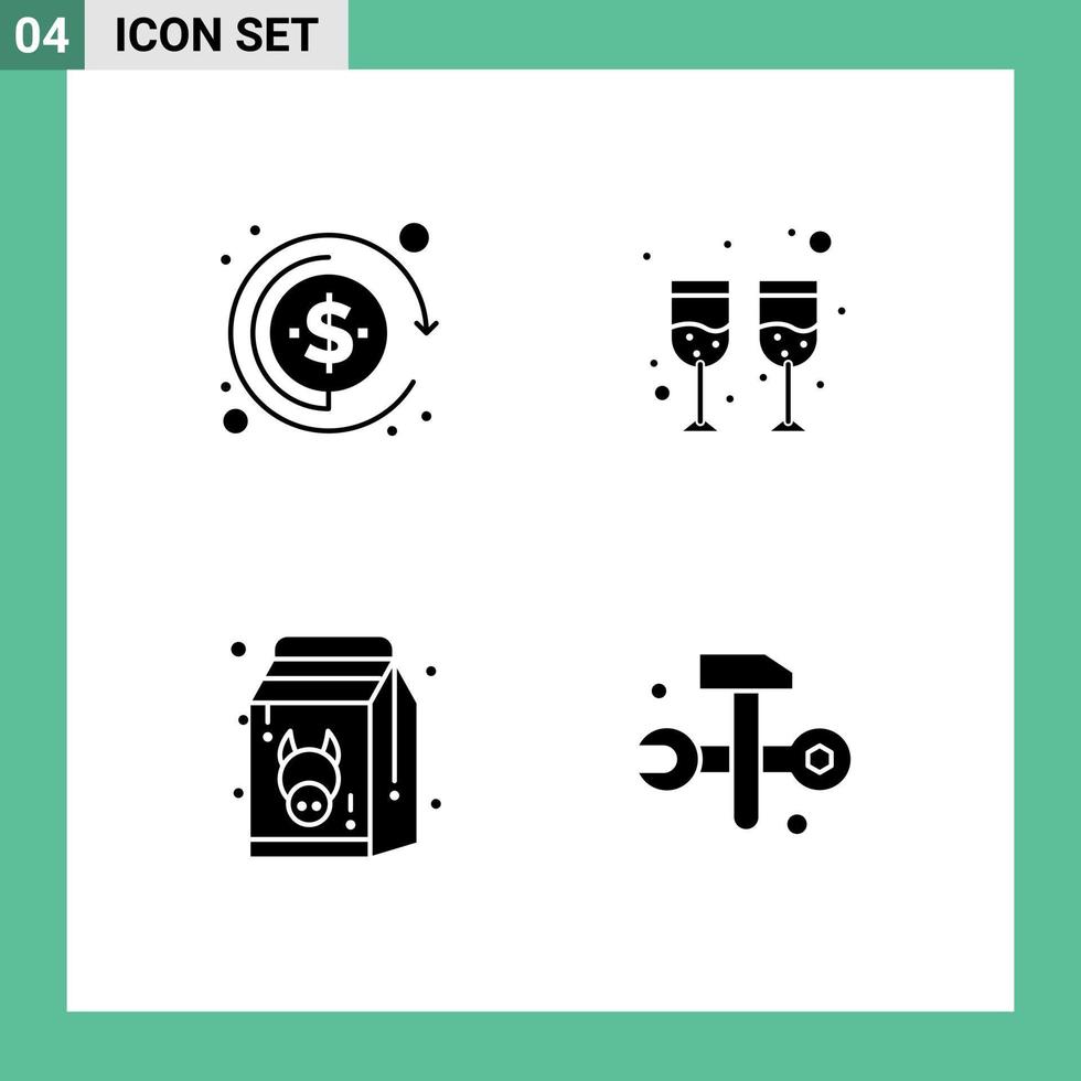 4 Solid Glyph concept for Websites Mobile and Apps currency healthy drink diet computing Editable Vector Design Elements