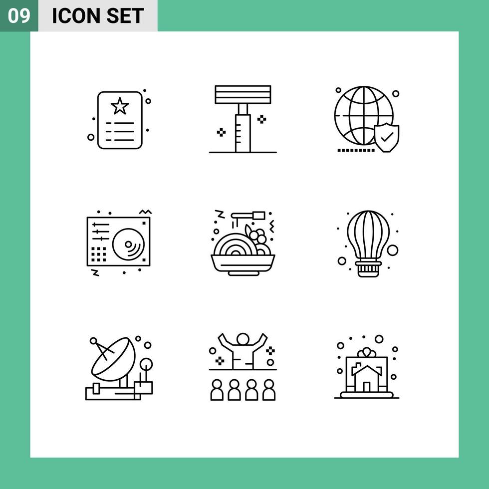 Editable Vector Line Pack of 9 Simple Outlines of player audio salon disc world Editable Vector Design Elements