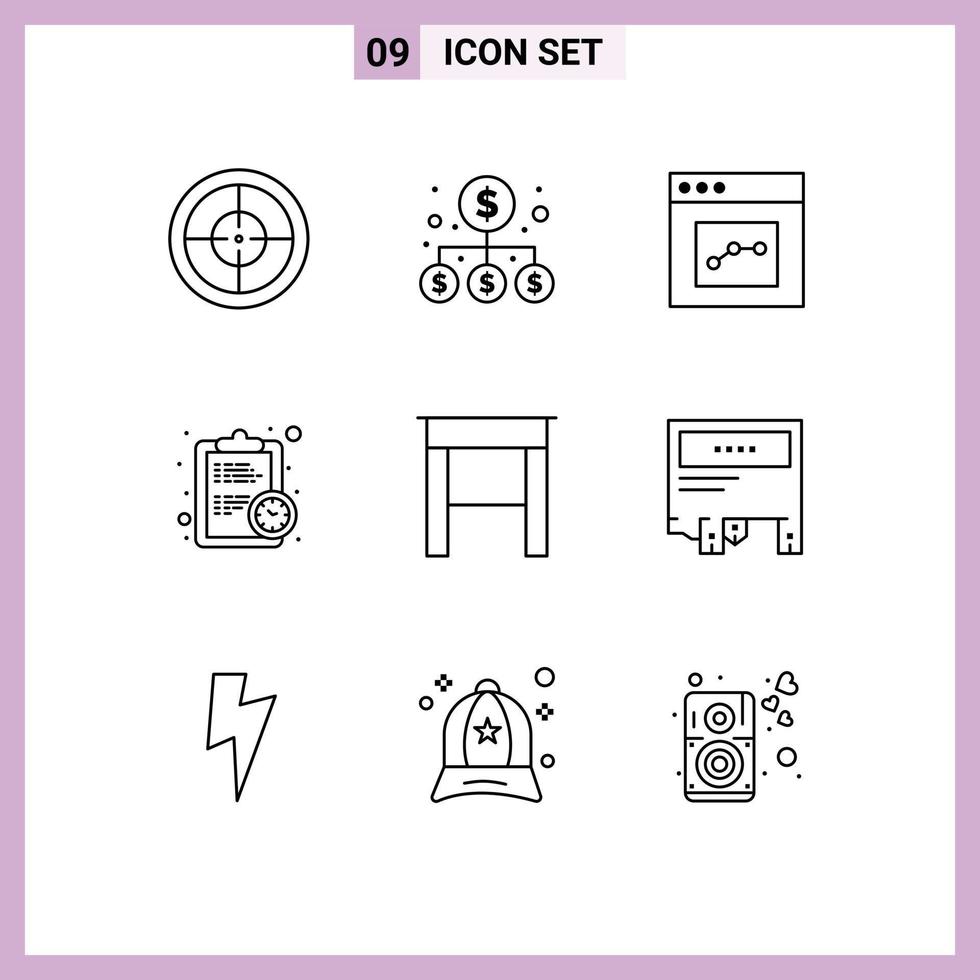 Mobile Interface Outline Set of 9 Pictograms of table desk communication estimate deadline Editable Vector Design Elements
