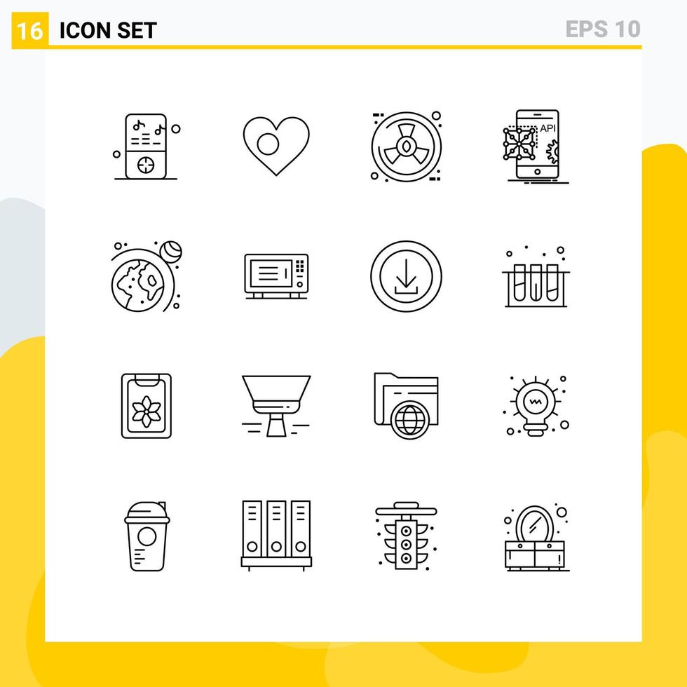 Pack of 16 Modern Outlines Signs and Symbols for Web Print Media such as mobile coding flag application nature Editable Vector Design Elements Free Vector