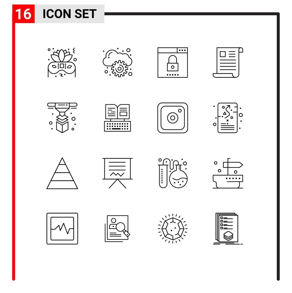 Group of 16 Outlines Signs and Symbols for printer paper optimization office document Editable Vector Design Elements Free Vector