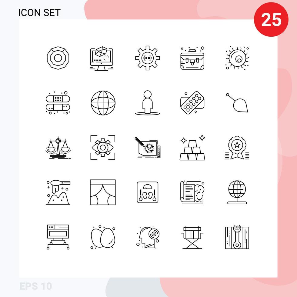 25 Universal Lines Set for Web and Mobile Applications biology suitcase coding case process Editable Vector Design Elements Free Vector