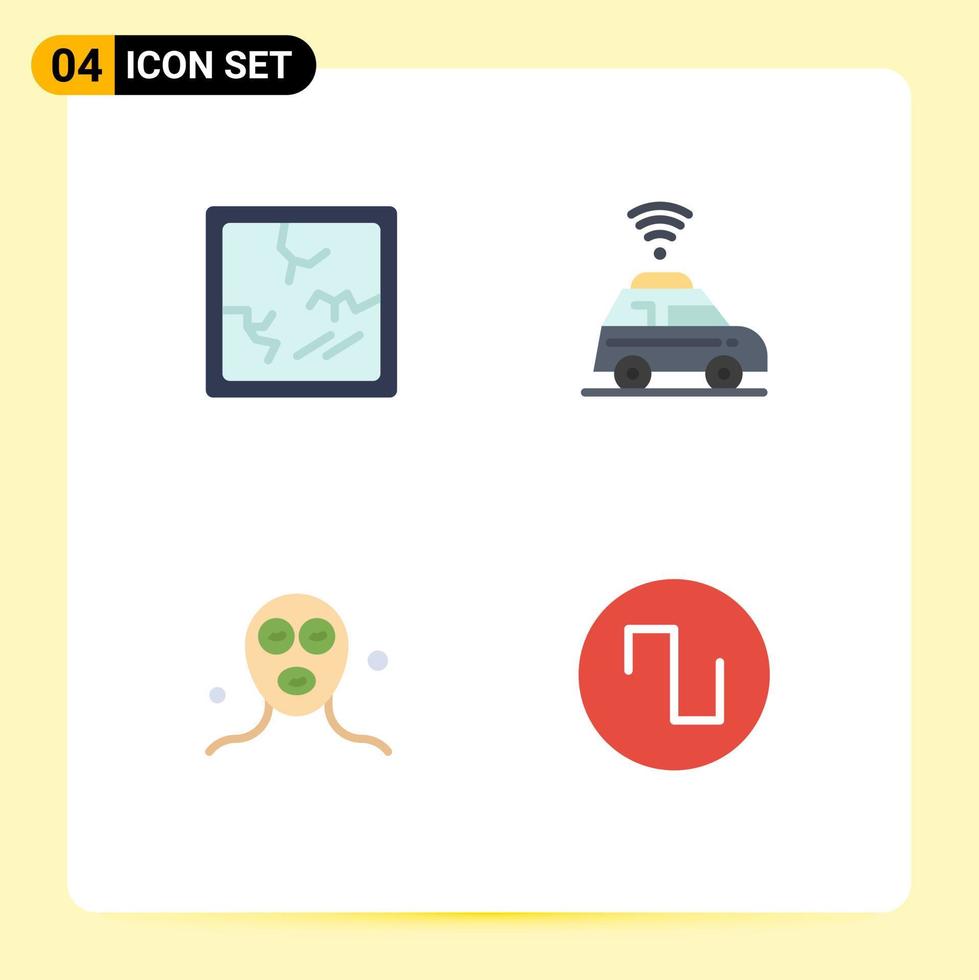 4 Universal Flat Icons Set for Web and Mobile Applications broken relaxation car beauty square Editable Vector Design Elements