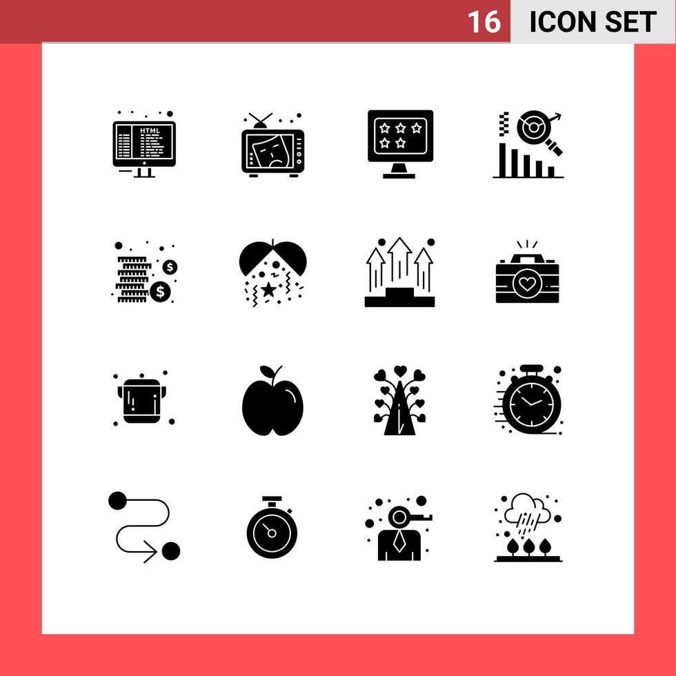 16 Universal Solid Glyphs Set for Web and Mobile Applications coins search paint graph star Editable Vector Design Elements