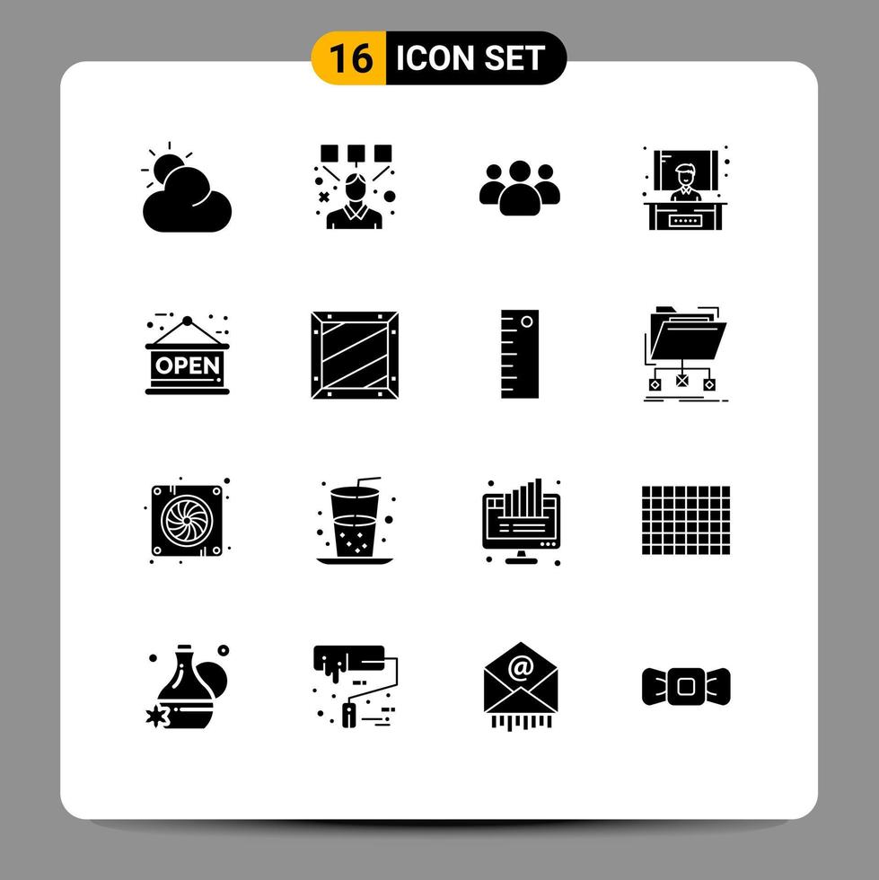 16 Universal Solid Glyphs Set for Web and Mobile Applications coding shop users open seminar Editable Vector Design Elements Free Vector
