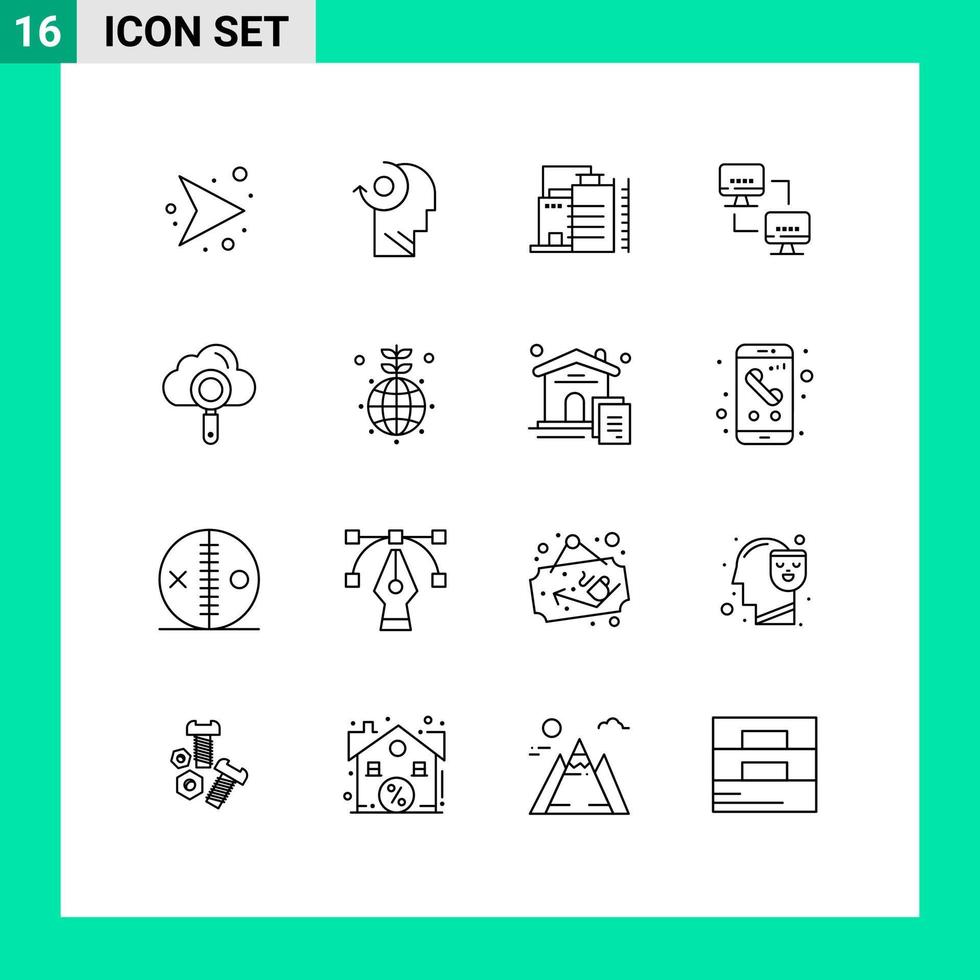 Outline Pack of 16 Universal Symbols of computing computers building computing computer Editable Vector Design Elements