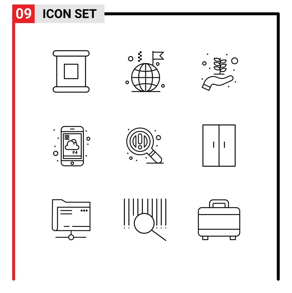 Mobile Interface Outline Set of 9 Pictograms of zoom find growth weather report Editable Vector Design Elements Free Vector