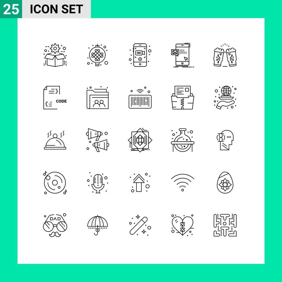 25 User Interface Line Pack of modern Signs and Symbols of message instant light dialog mobile recording Editable Vector Design Elements Free Vector