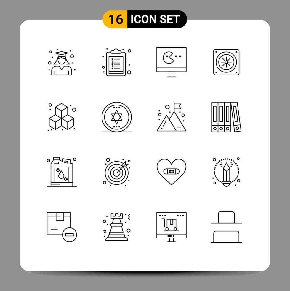 16 Universal Outlines Set for Web and Mobile Applications halloween cube game box cooling Editable Vector Design Elements