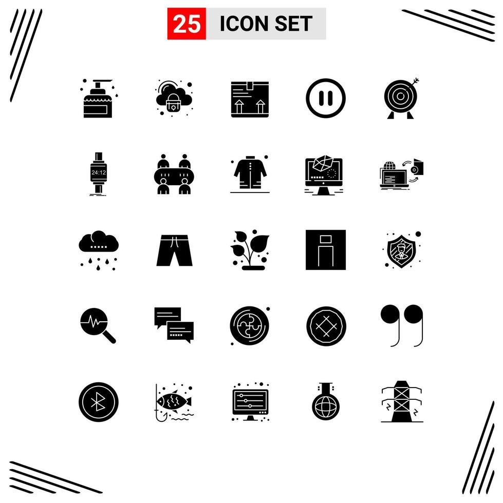 25 Universal Solid Glyph Signs Symbols of business user secure pause up Editable Vector Design Elements