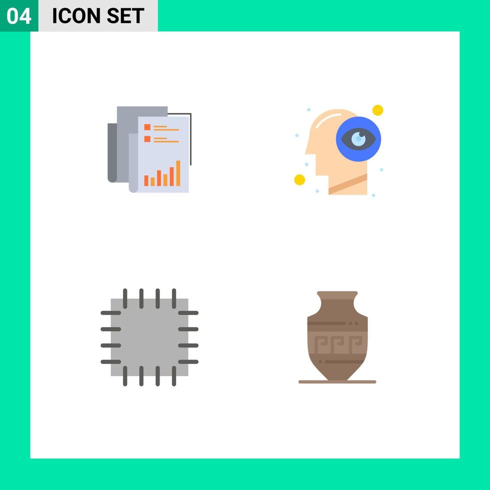 4 Universal Flat Icons Set for Web and Mobile Applications report vision business paper patch Editable Vector Design Elements