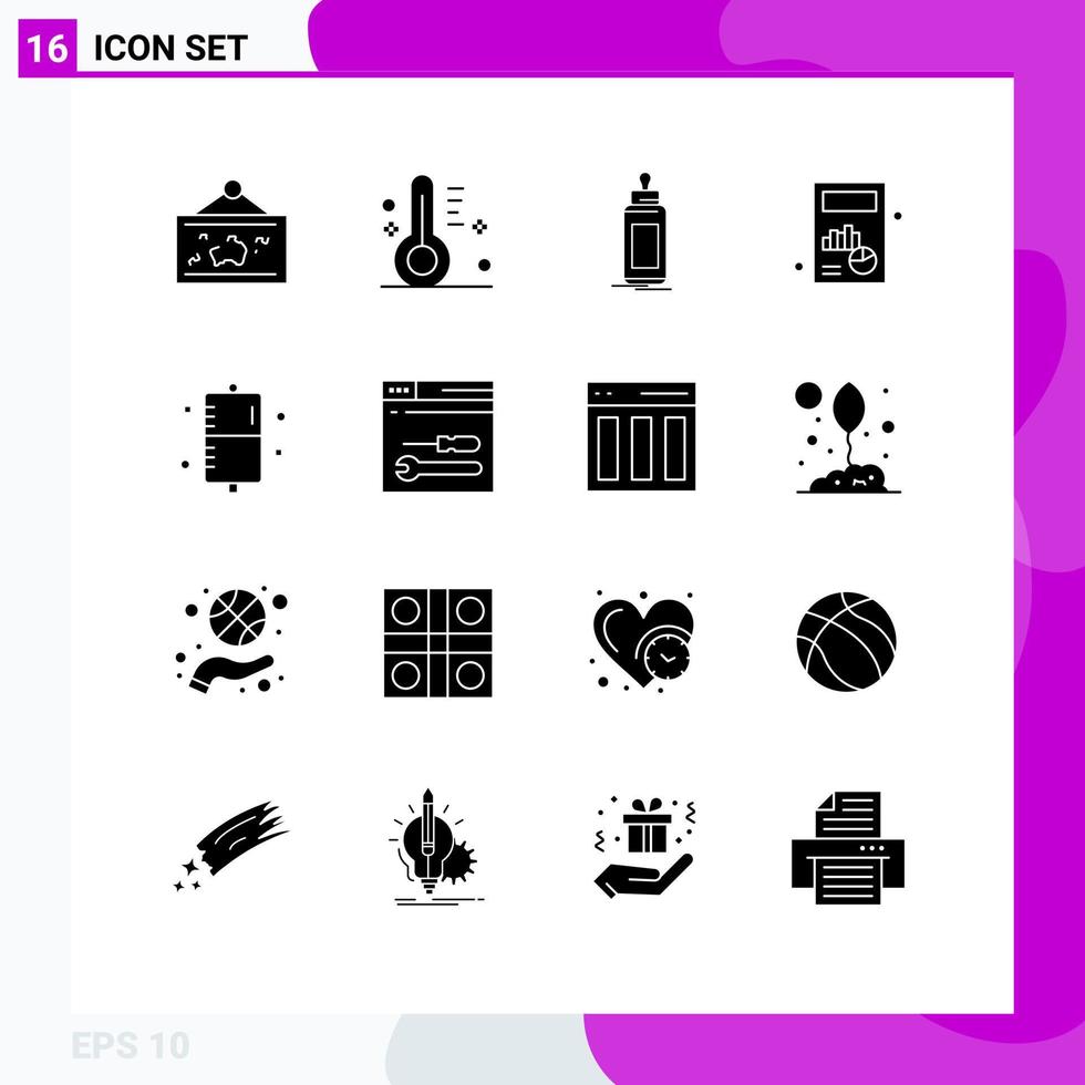 16 User Interface Solid Glyph Pack of modern Signs and Symbols of graph calculate temperature business baby Editable Vector Design Elements